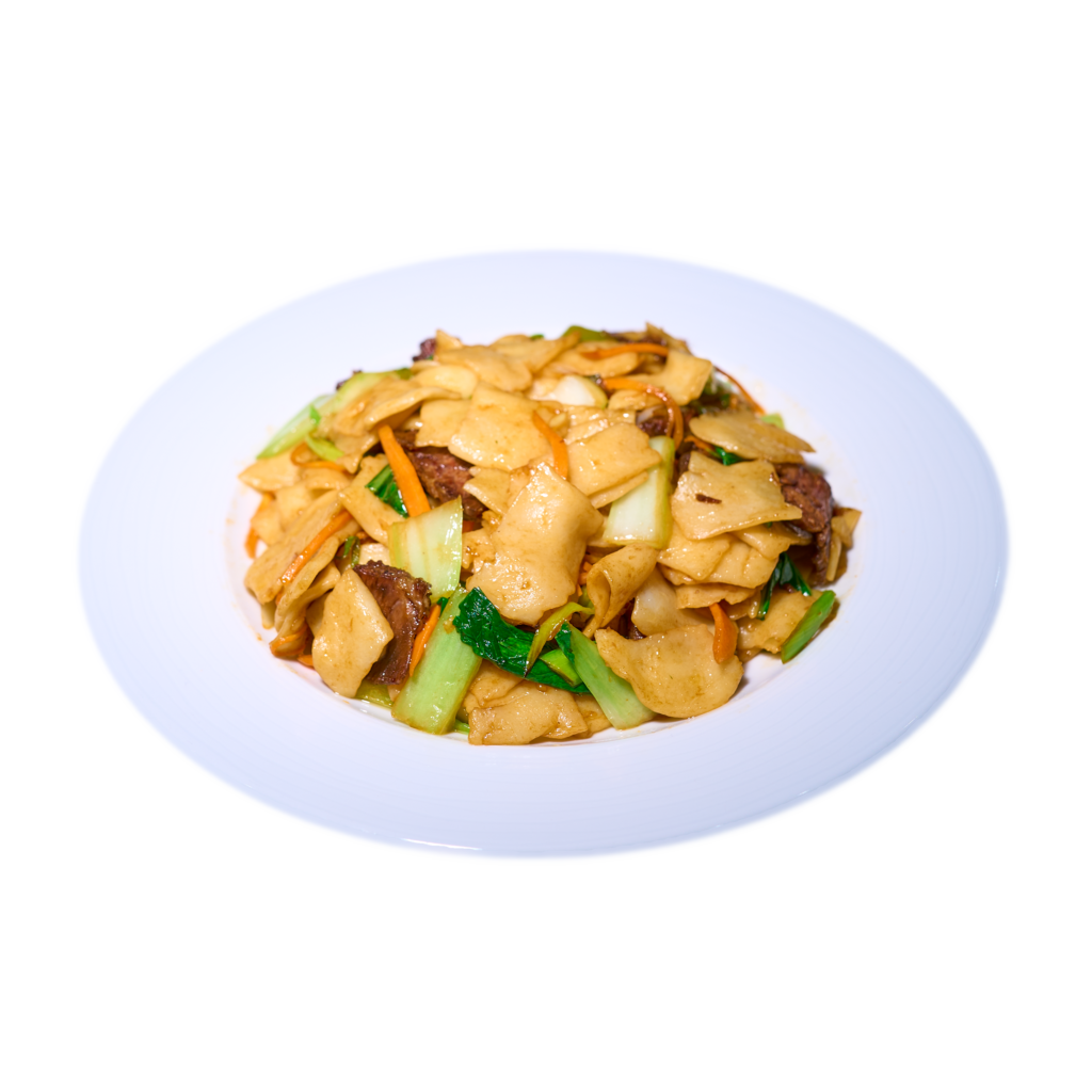 Homemade Tibetan noodles, stir-fried with beef and vegetables