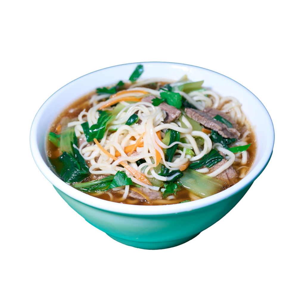 Bouillon de boeuf maison avec nouilles et légumes frais